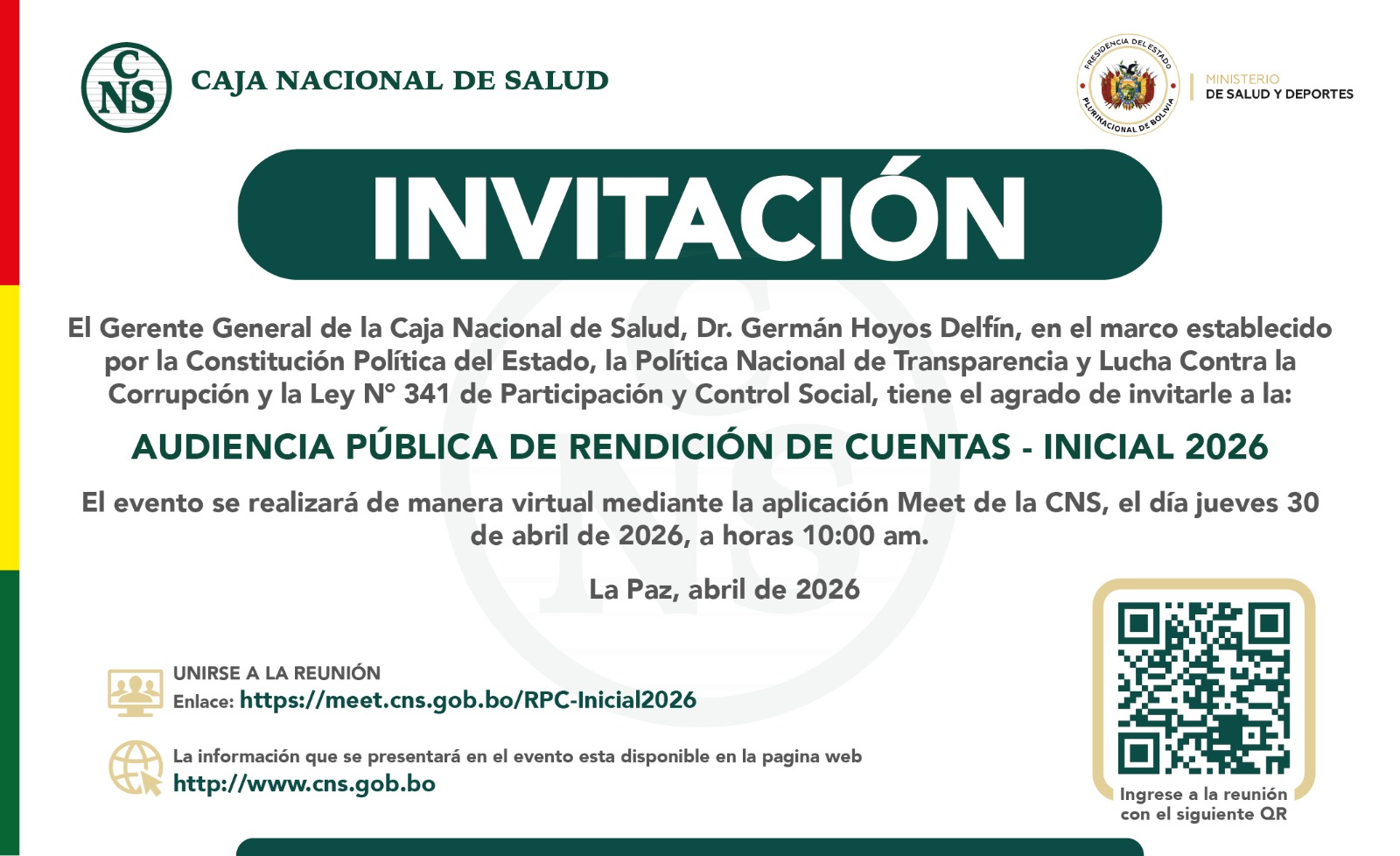 <td align="justify">AUDIENCIA PÚBLICA DE RENDICIÓN DE CUENTAS INICIAL - 2026</td>